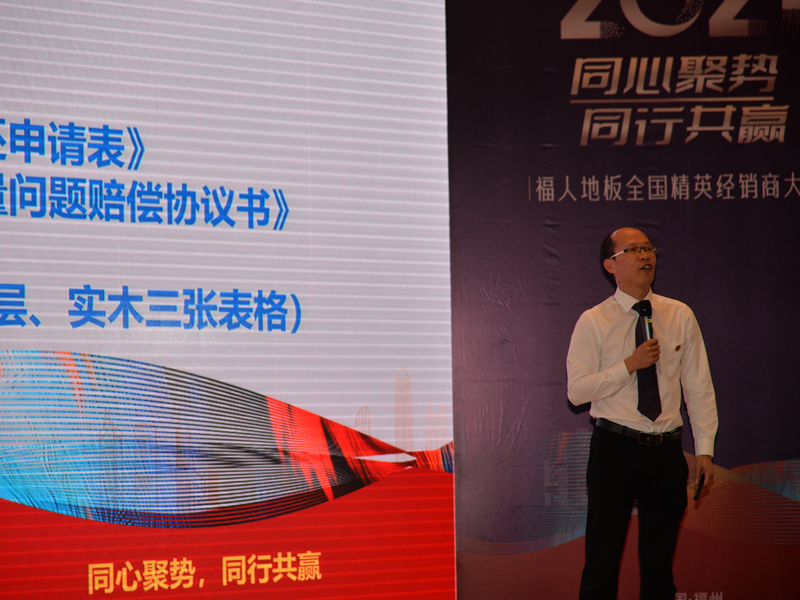 首先,cq9电子官方网站地板营销总监石开洪先生做开场演讲。石总在演讲中总结了上一年度销售事情的情形,并对2021年度做了妄想和展望。我们将继续坚持“以消耗者为中心”,“做服务第一品牌”,为经销商提供更多的支持,和天下经销商朋侪们一起互惠互利,携手共赢,配合生长。